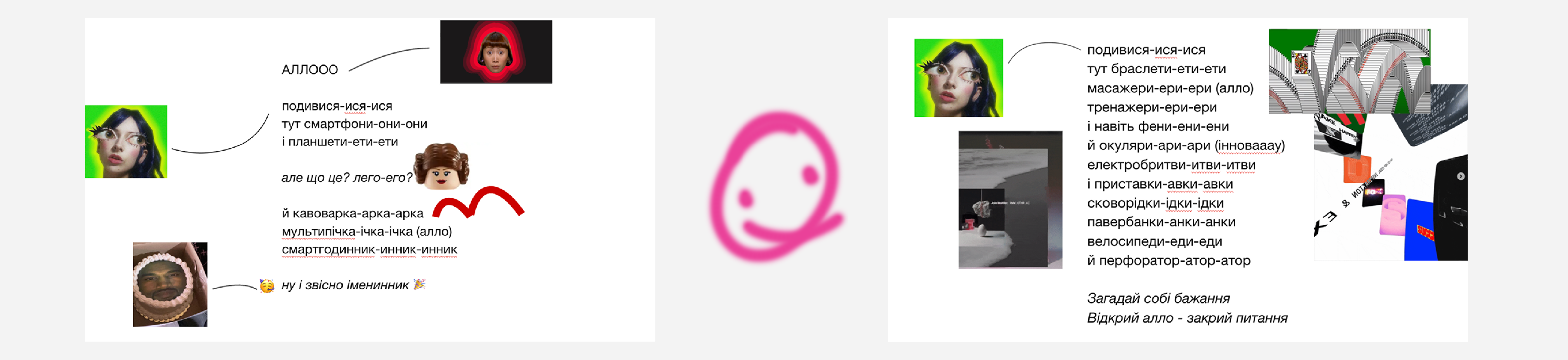 У нас було детальне бачення, як можна розвинути у ролику кожен із наших варіантів. Але коли клієнт усе ж обрав ідею «подивися-ися», ми почали рухатися з нею. Ми вирішили зробити для ролика речитатив. Так у нас зʼявилися й смартфони-они і планшети-ети і багато-ато іншої техніки, що є у маркетплейсі Алло. І ефект «ехо» дуже вдало підсилював враження цього різноманіття.