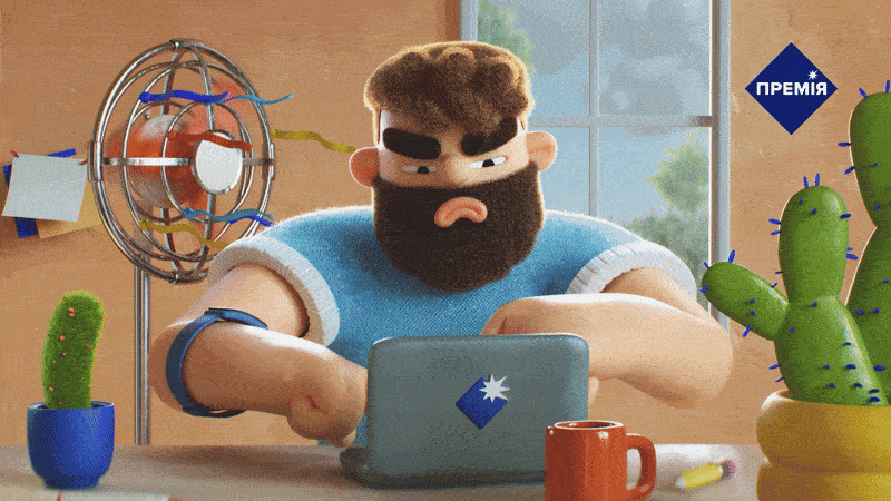 І якщо ви ще про це не знаєте, то окрім самого сторітелінгу, ми у наших роликах дуже любимо наповнювати сцени маленькими детальками, які треба ще постаратись віднайти. На ноутбуці героя розташоване стилізоване лого Премія, а його годинник вкінці ролика стає іграшковим годинником-цукеркою.